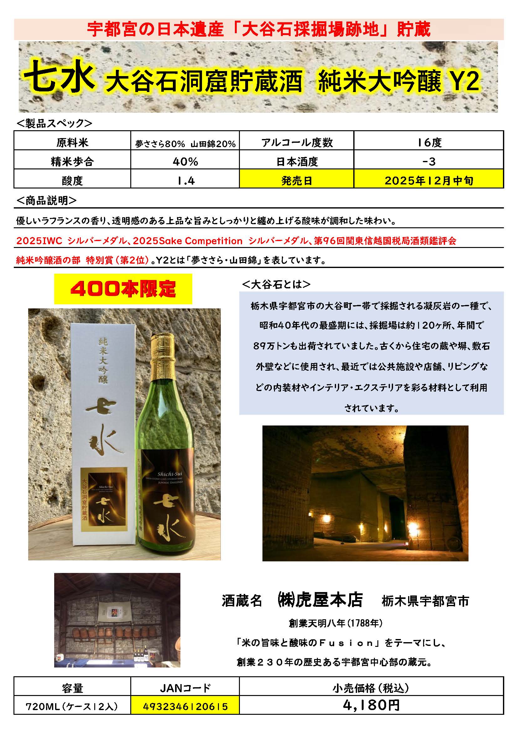 2025/12/02 宇都宮 大谷石洞窟貯蔵 七水 発売のご案内
